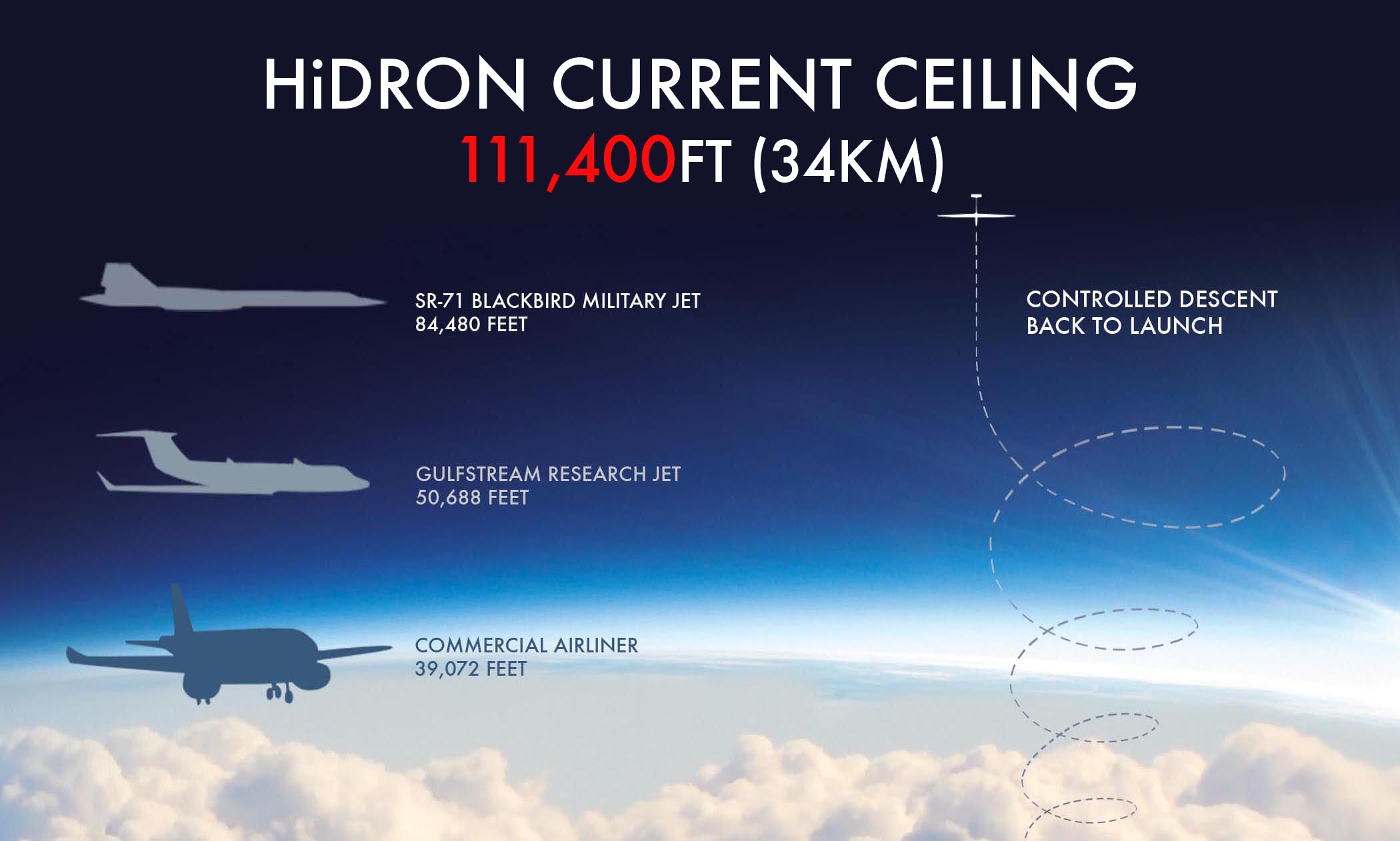 The balloon launched HiDRON stratospheric glider achieved controlled flight following a release from a sounding balloon at altitudes above 82,000 ft. (25 km) on both June 1 and 4 and 98,000 ft (30 km) on June 6. The UAVOS designed autopilot demonstrated a breakthrough in autonomous control during the critical ‘pullout phase’.  At the 98,000 ft apogee, the HiDRON released from the balloon in zero-gravity conditions, accelerated rapidly, approaching 300 mph (480 kph) in the first 15 seconds of flight. The HiDRON completed the pullout phase and achieved controlled flight at an altitude above 92,000 ft (28 km), 7000 ft. higher than the record setting SR-71 Blackbird while travelling at a 280 mph (450 kph) ground speed. The HiDRON then glided in a controlled flight path back toward Spaceport America’s runway for approximately 4.5 hours while recording flight and payload data. Before landing, the team also tested the autonomous soaring algorithm with the HiDRON gaining almost 3000 ft of altitude by self-centering in a convection thermal.